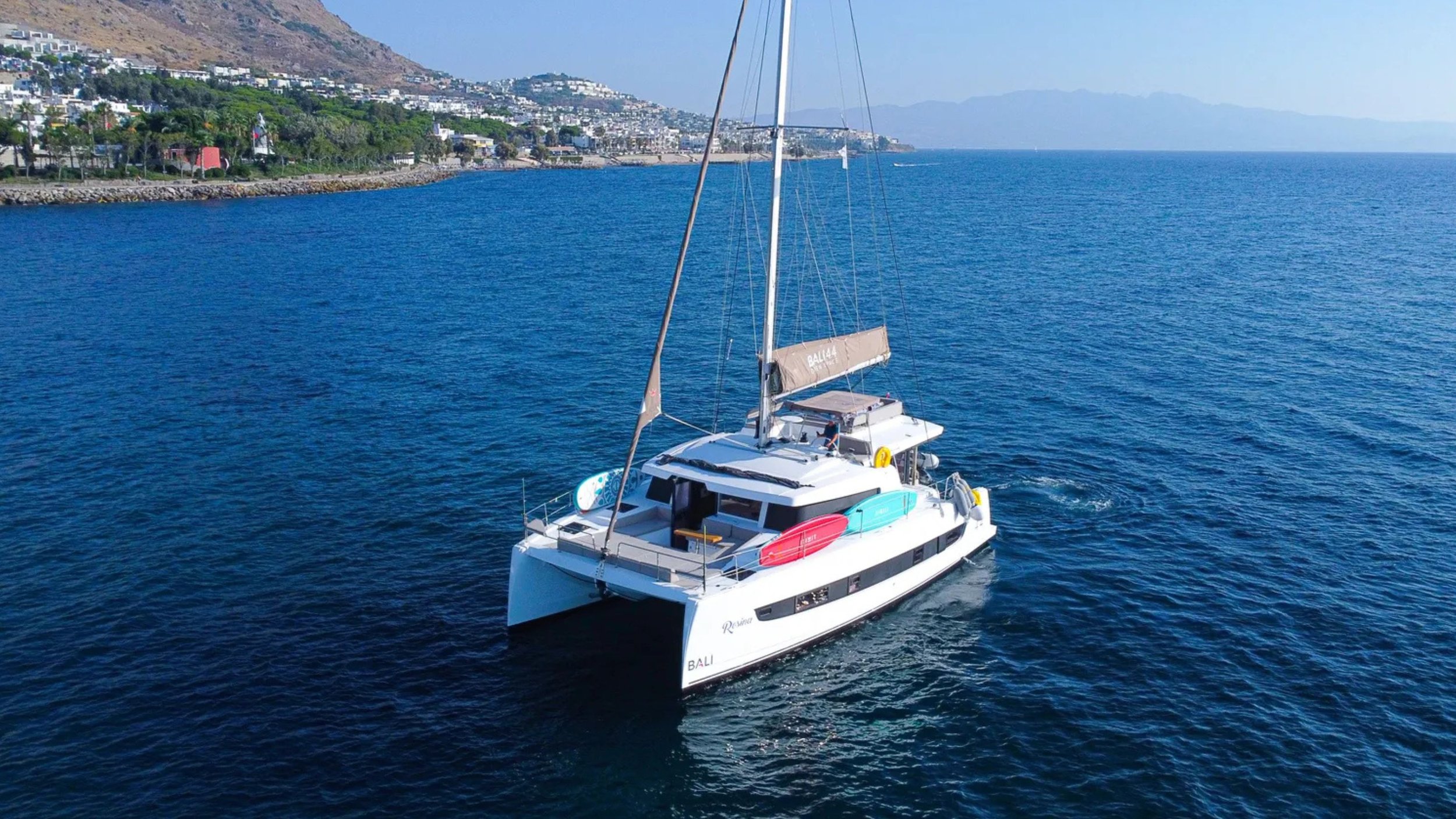 A contemporary 46–48ft catamaran offering elegant interiors, generous lounging decks and up to four ensuite cabins. Perfect for relaxed sailing between Bodrum, Knidos and the Carian Coast’s peaceful coves, golden light and warm, summer-smooth seas.