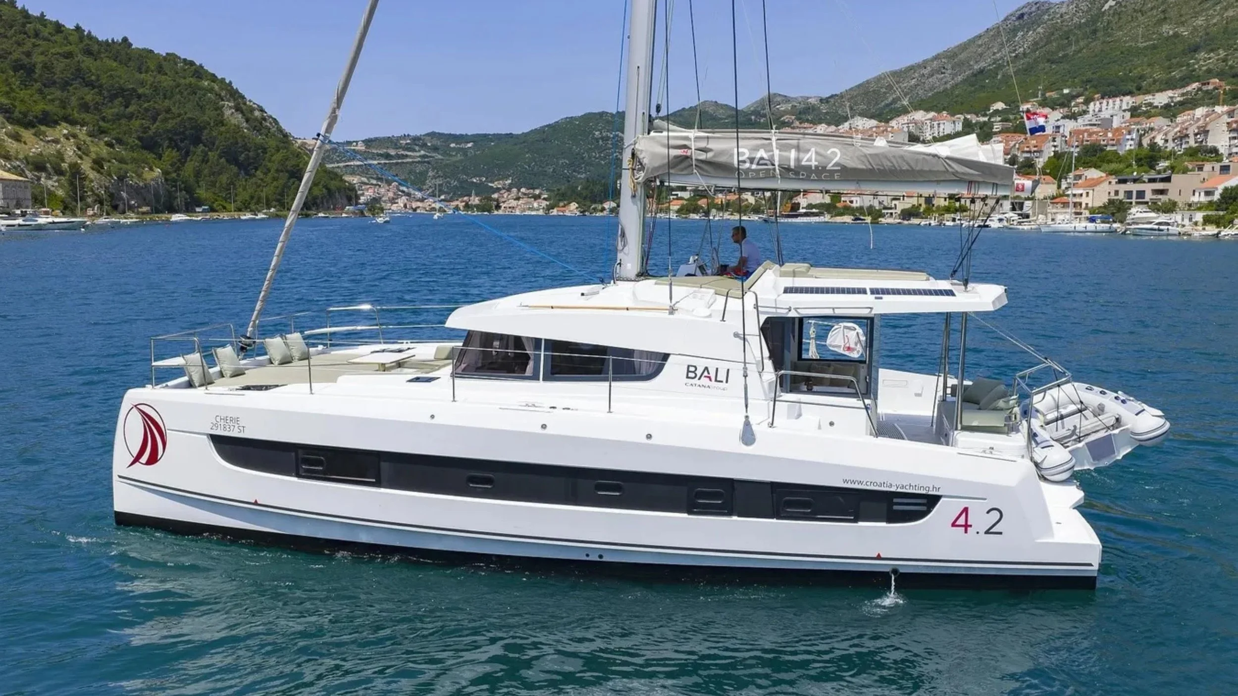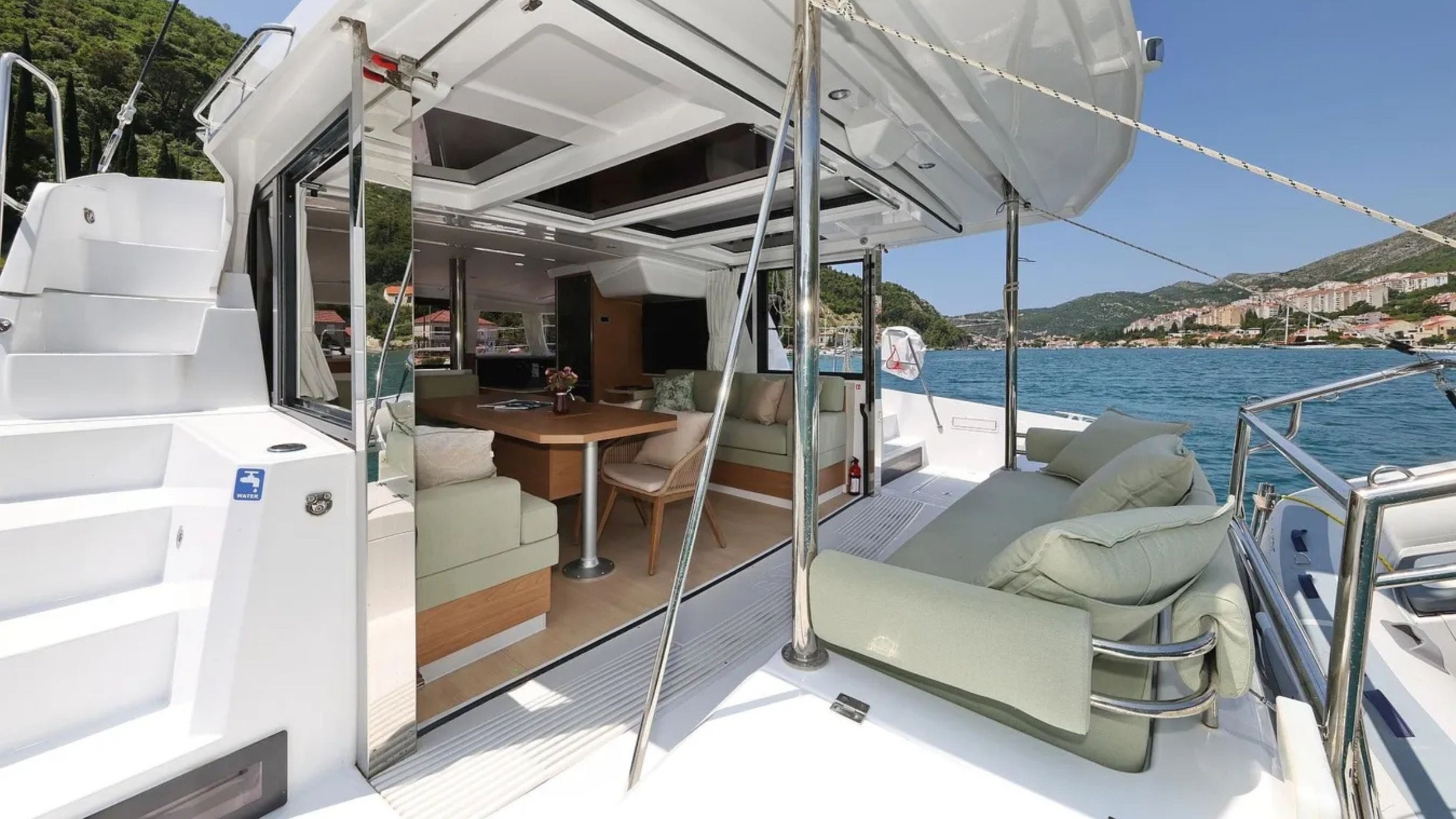 A spacious 46–48ft catamaran with up to four ensuite cabins and dedicated crew quarters. Elegant interiors and wide lounging decks make it ideal for three couples sailing from Dubrovnik’s old walls to Korčula’s medieval streets and Mljet’s serene green lagoons.
