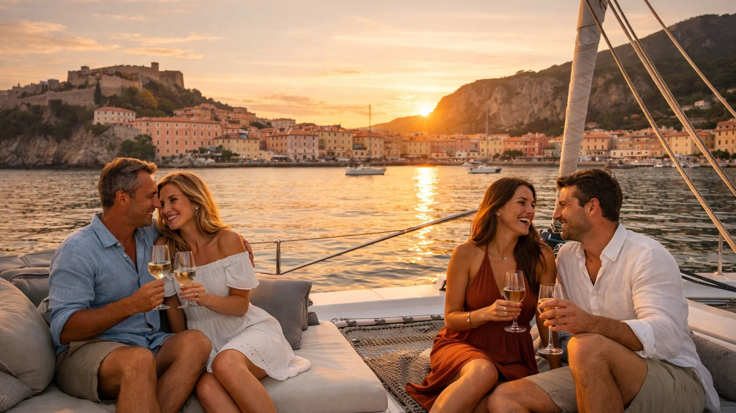Nestled on Tuscany’s coast, Marina di Scarlino is the perfect embarkation point. Modern marina facilities and relaxed waterfront cafés set the scene as you prepare to cast off. A gentle evening sail introduces the island’s horizon, promising a week of adventure and discovery.