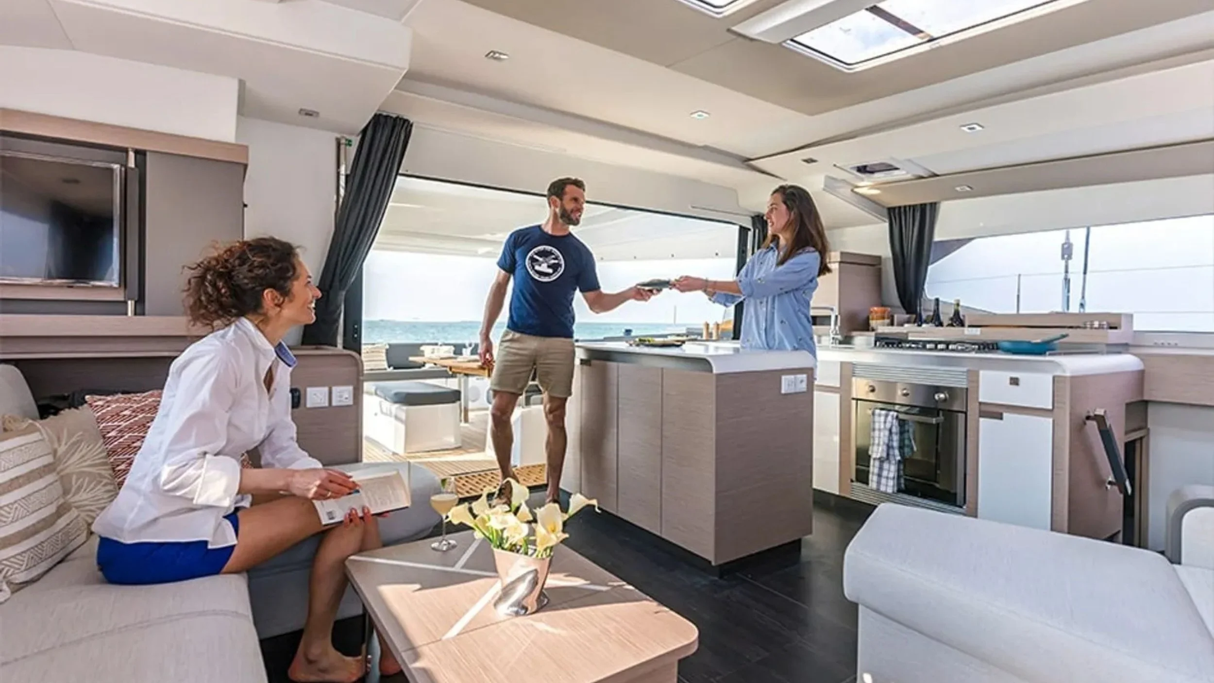 A stylish 46–48ft catamaran with up to four ensuite cabins and dedicated crew quarters. Wide decks, elegant lounging spaces, and effortless sailing set the tone for a relaxed, sociable escape across the Riviera’s celebrated bays and sparkling anchorages.”